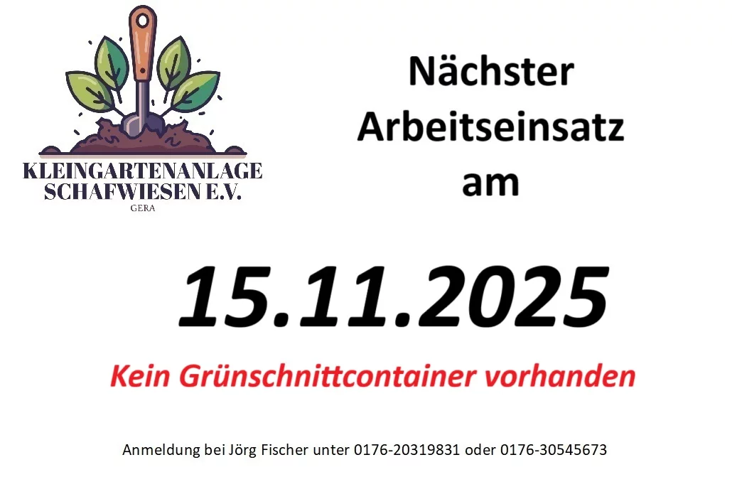 Aufgrund der hohen Entsorgungskosten, die auf alle Gartenfreunde umgelegt werden müssen, wurde in der Mitgliederversammlung beschlossen, das in diesem Jahr keine Grünschnittcontainer bereitgestellt werden.
