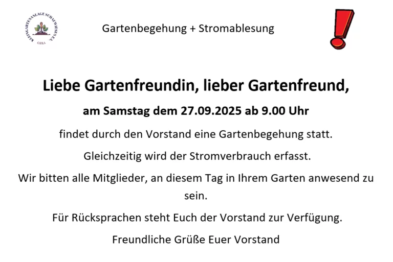 Sehr geehrte Gartenfreunde, sehr geehrte Gartenfreundinnen,